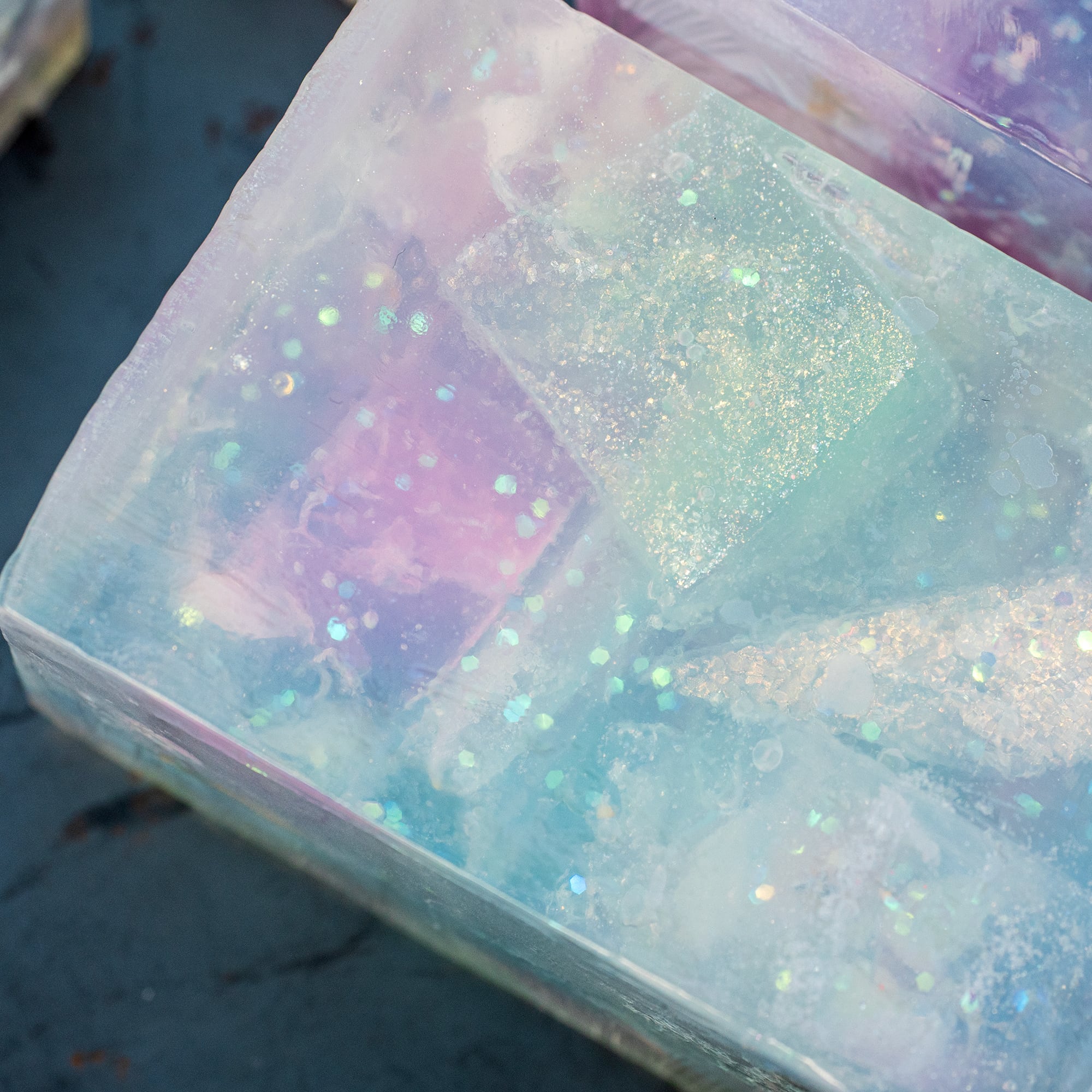 キラキラのラメと元気な色合いでカラフルなおいしいシャーベットを表現。