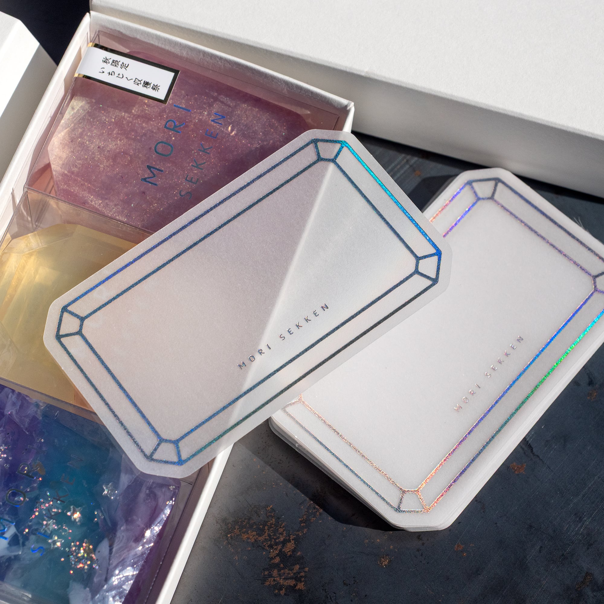 キラキラオーロラ箔が輝く、トレーシングペーパーのメッセージカードです。