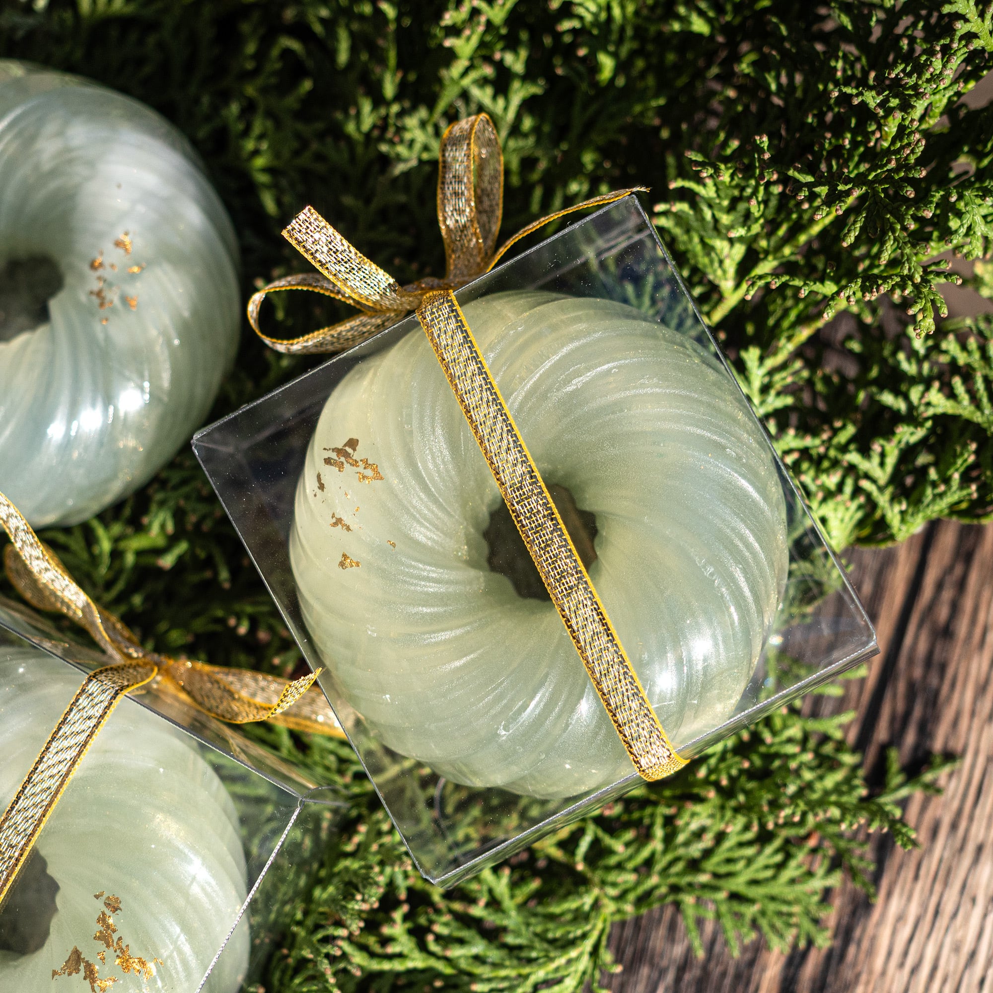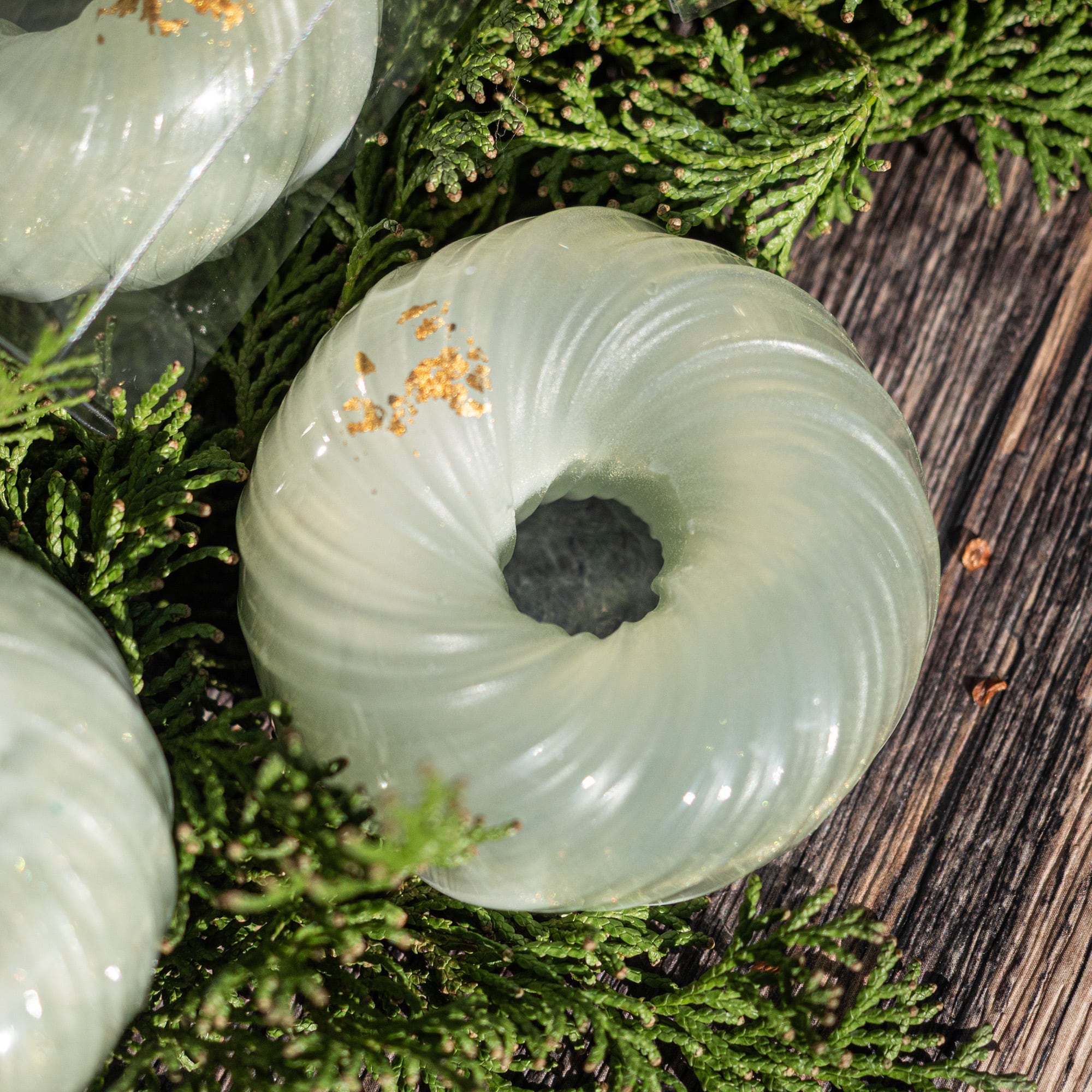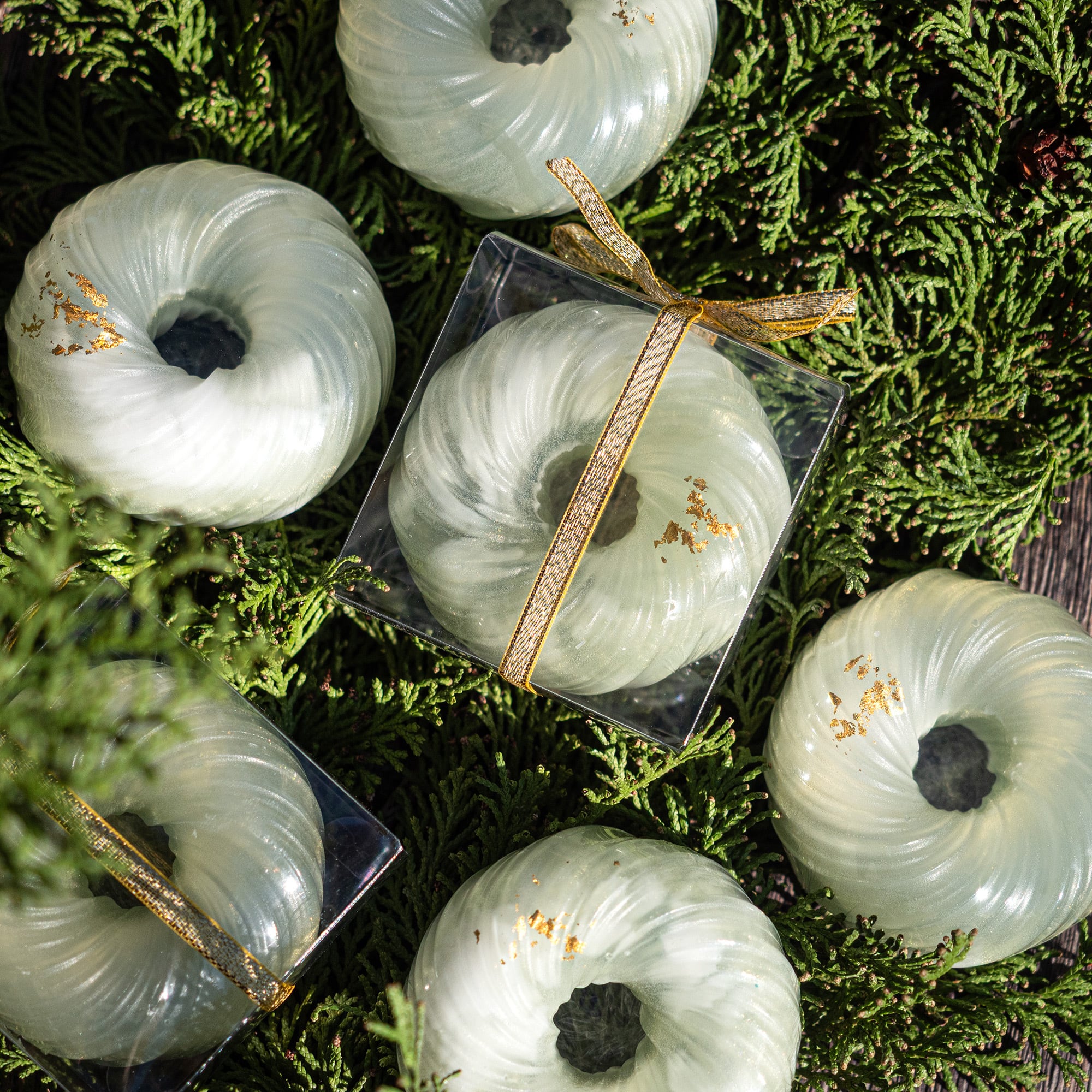 通常の宝石石鹸の2倍の重量の石鹸に金沢産の金箔をあしらい、豪華に仕上げました。
