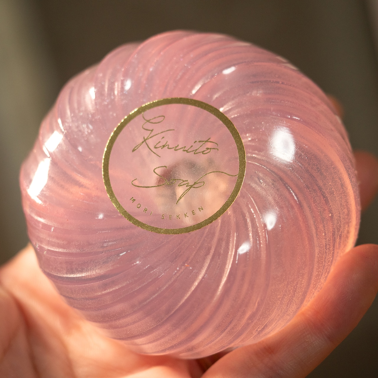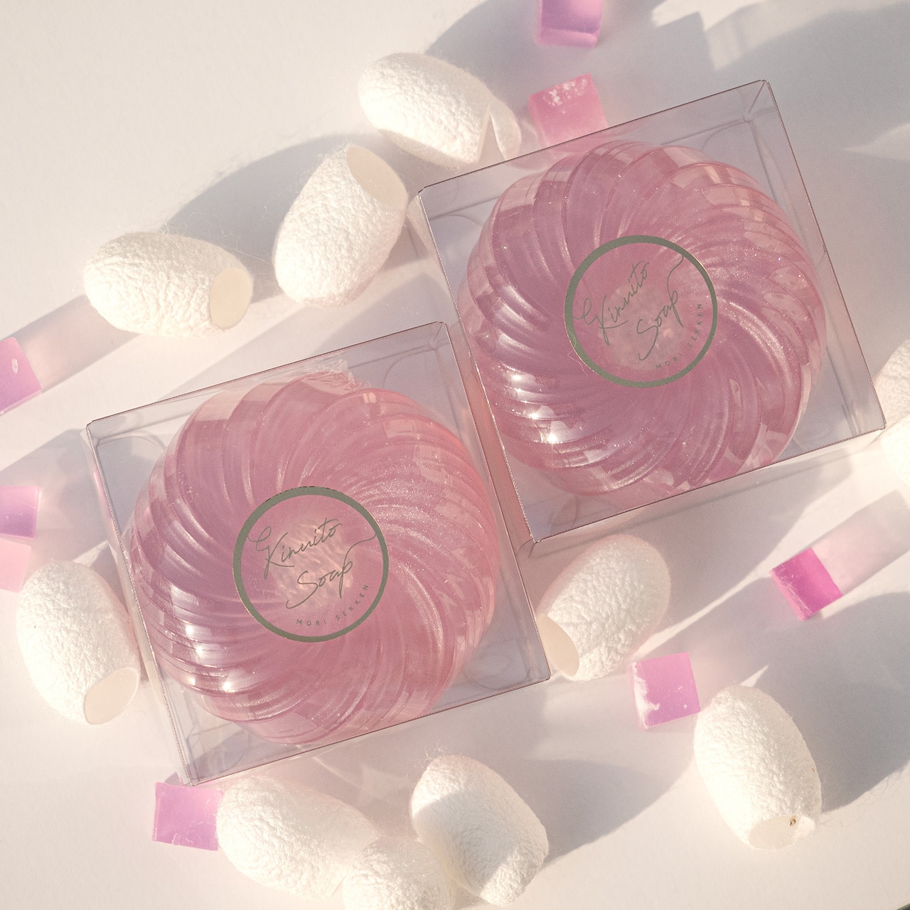 絹糸を巻いてあるようなデザインの美しい石けんです。